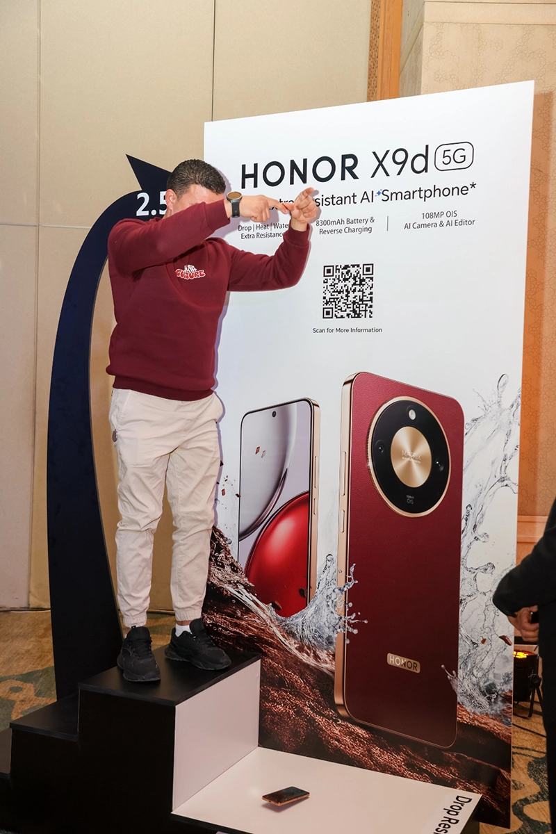 يحصل هاتف HONOR X9d على شهادة SGS Triple Resistant Premium Performance، وهي الأولى من نوعها في عالم الهواتف الذكية، إلى جانب تصنيف SGS خمس نجوم لمقاومة السقوط. ويوفّر الهاتف حماية متقدمة ضد السقوط من ارتفاع يصل إلى 2.5 متر، بفضل هيكل معزّز بتقنية HONOR Ultra-Bounce وشاشة زجاجية فائقة السماكة قادرة على تحمّل أكثر من 10 أنواع من الصدمات.